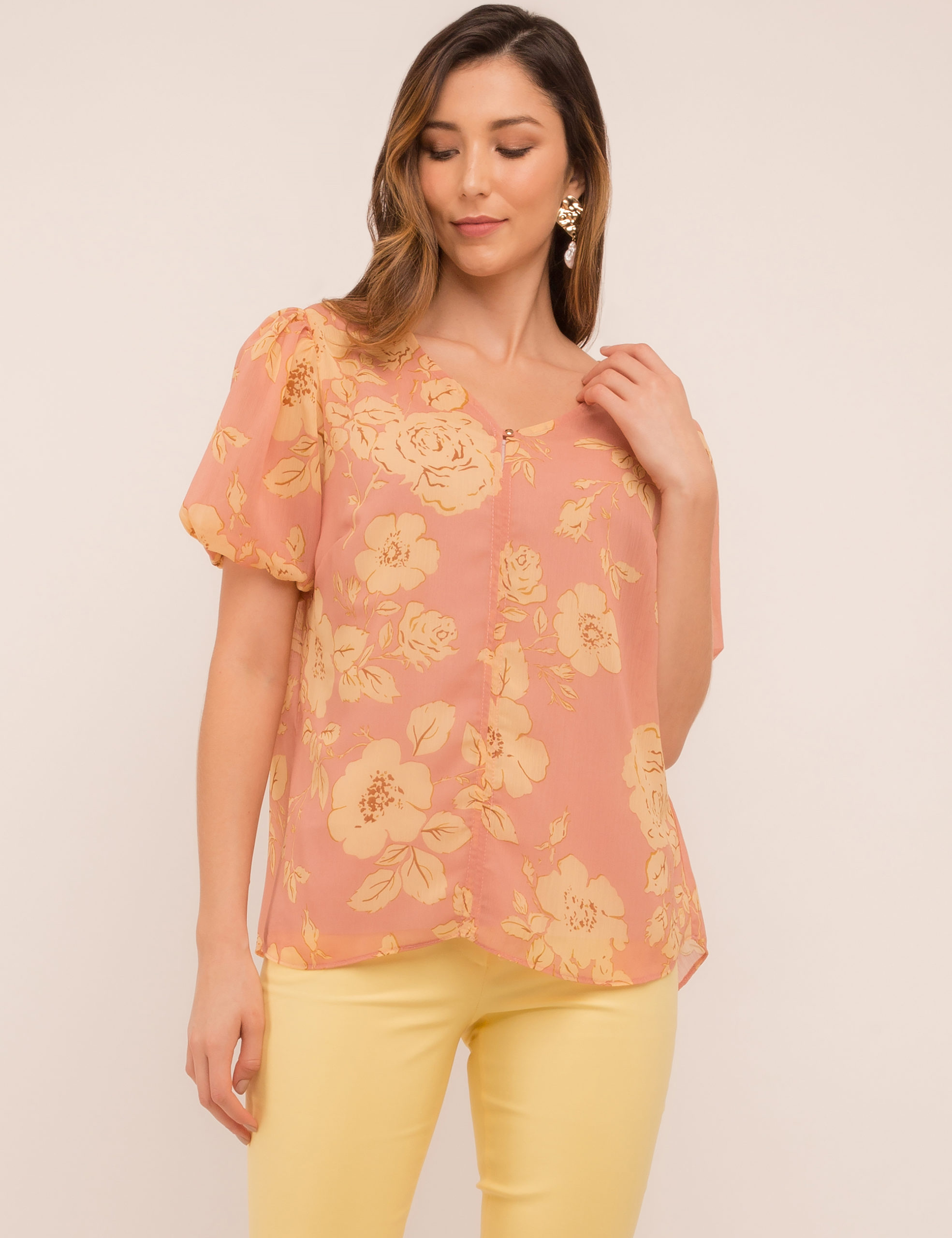 BLUSA CREPE ESTAMPADA C/ MANGA BUFANTE