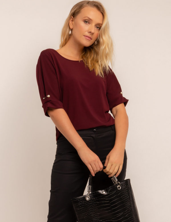 BLUSA MANGA CURTA CREPE C/DETEM BOTÃO DOURADO