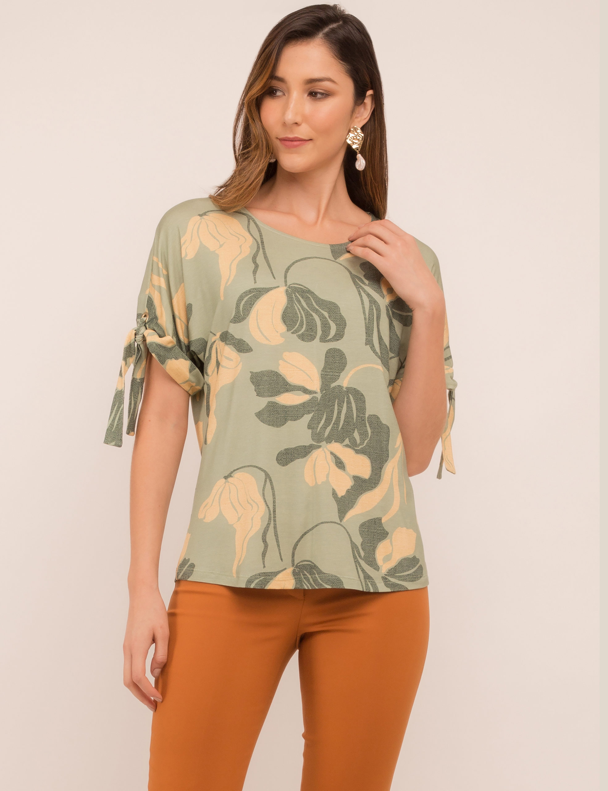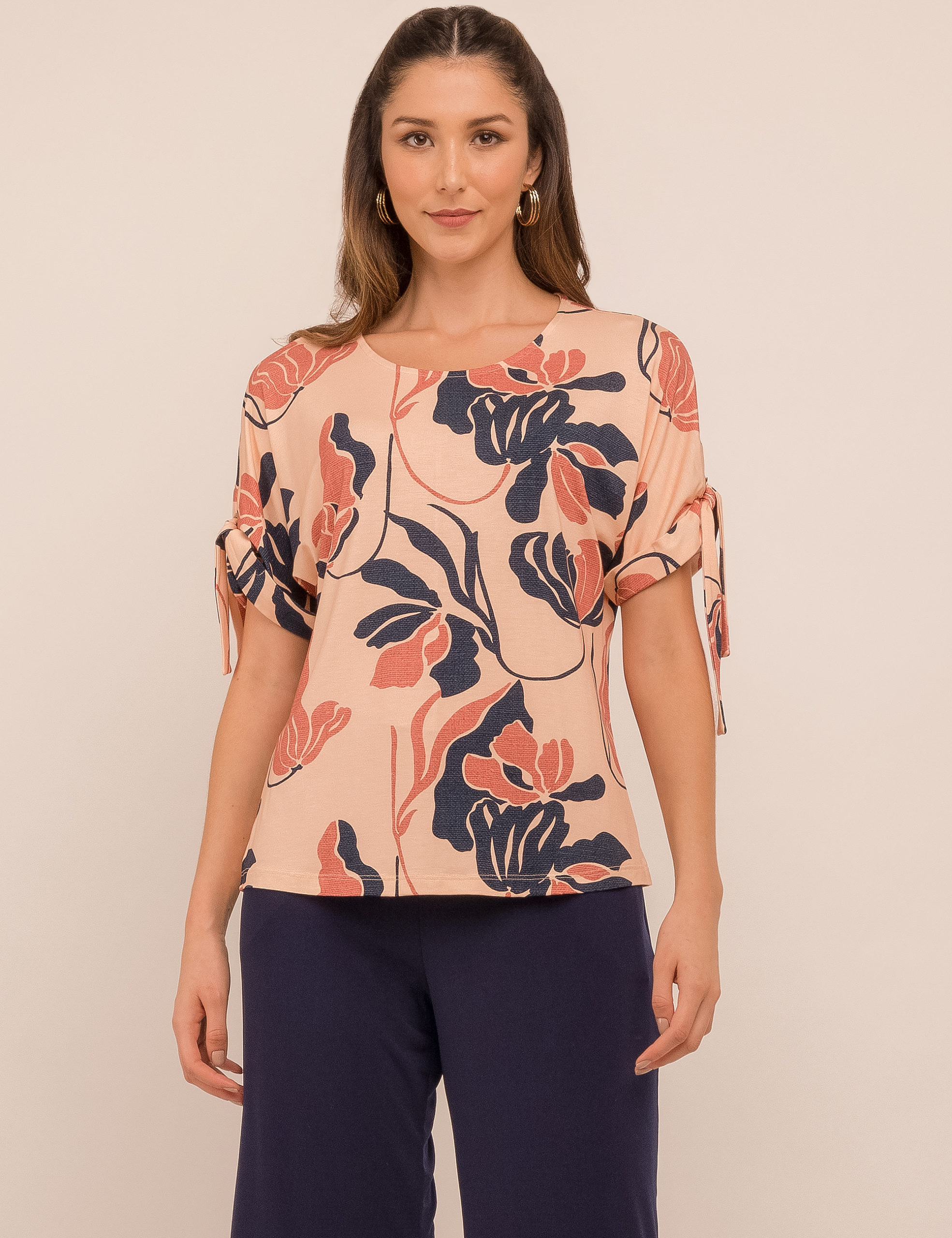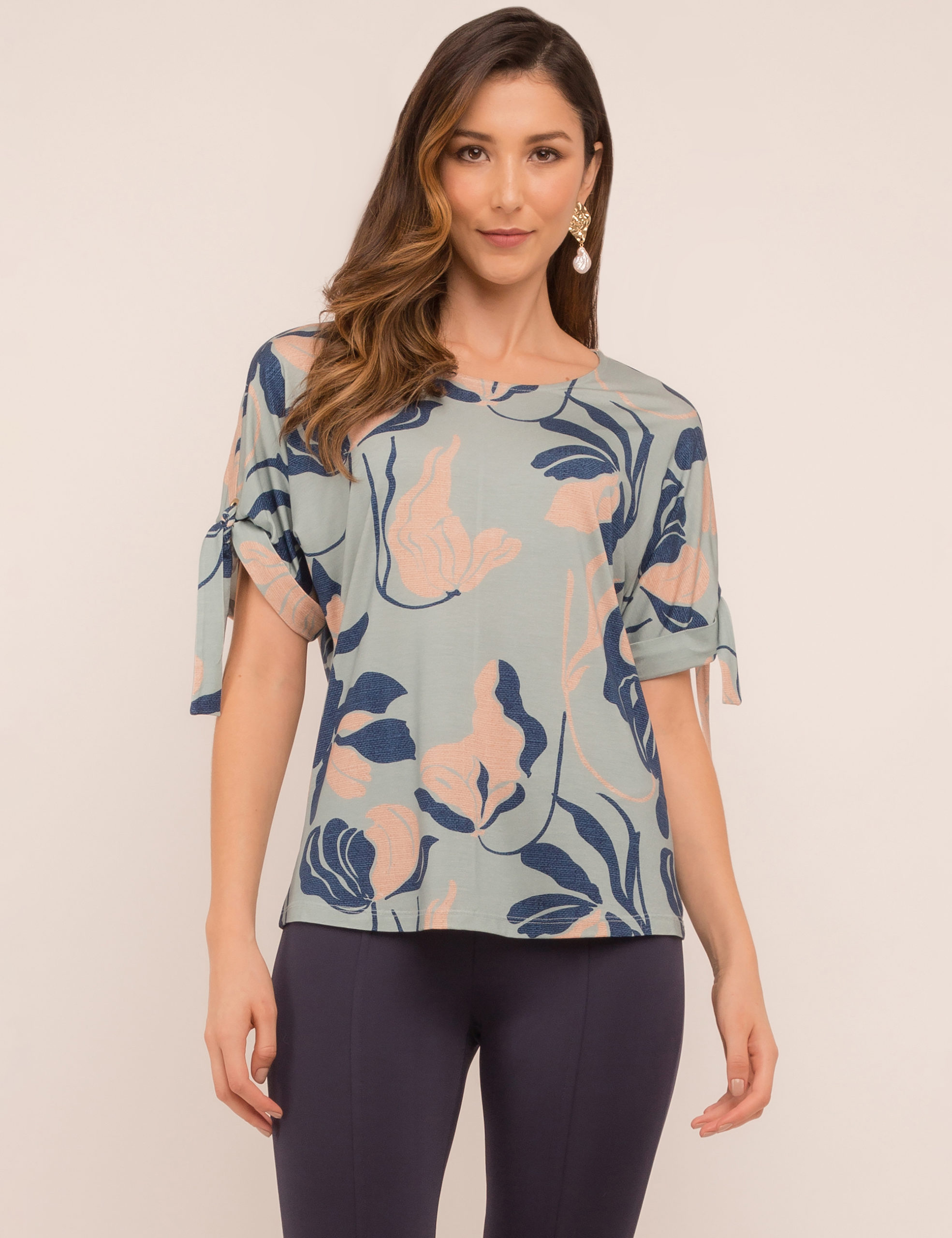BLUSA MALHA ESTAMPADA C/DET MANGA