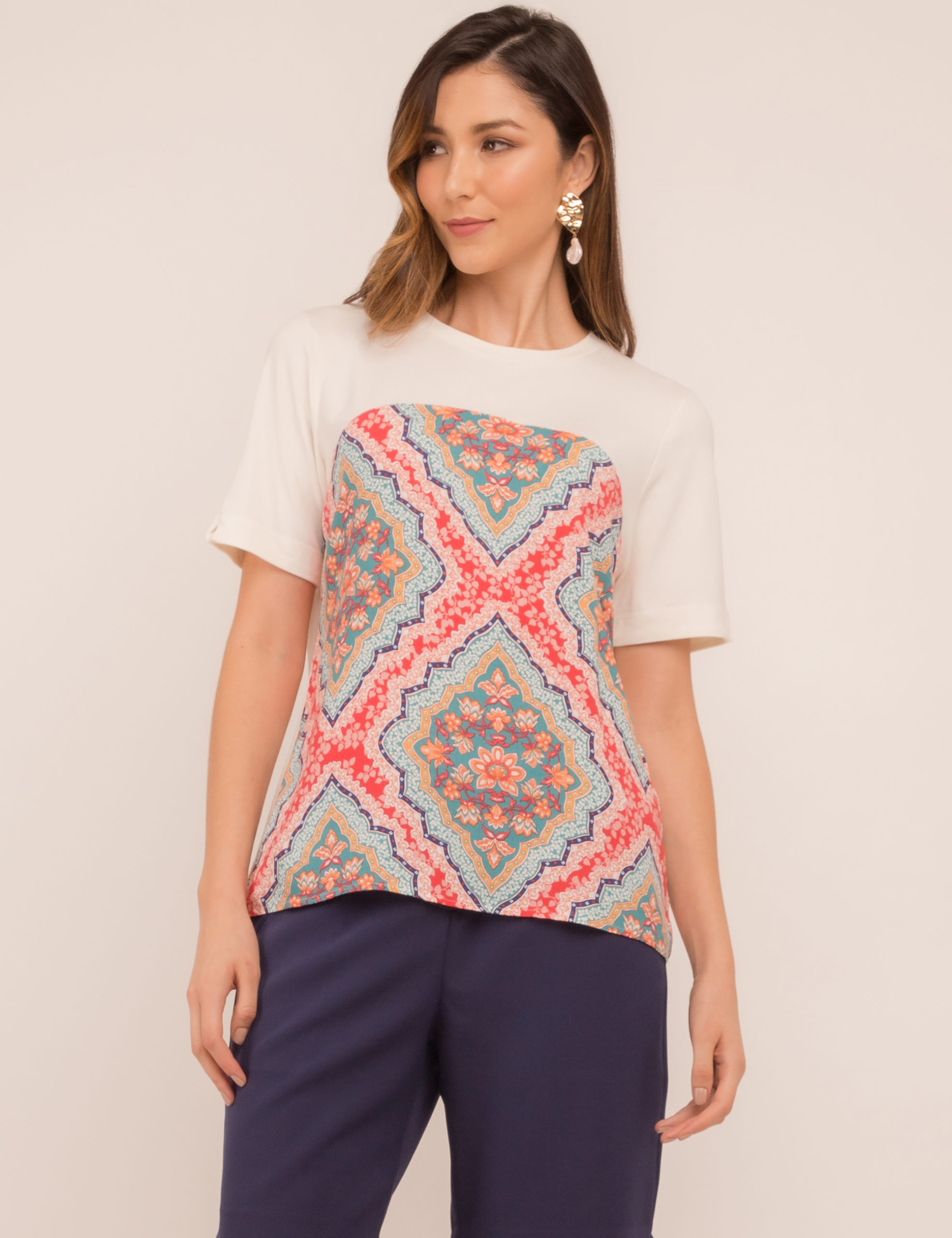 T-SHIRT MALHA C/ APLICAÇÃO