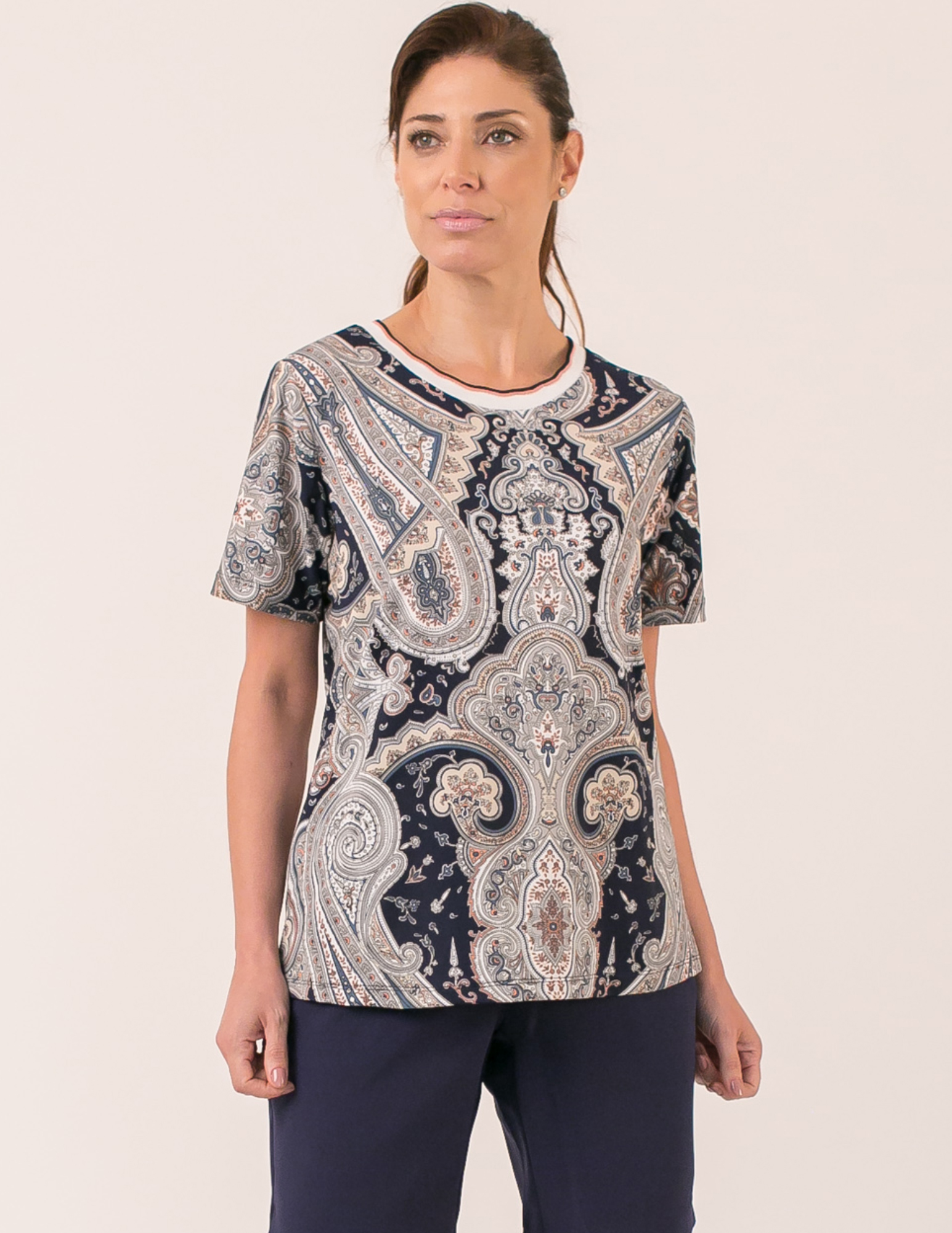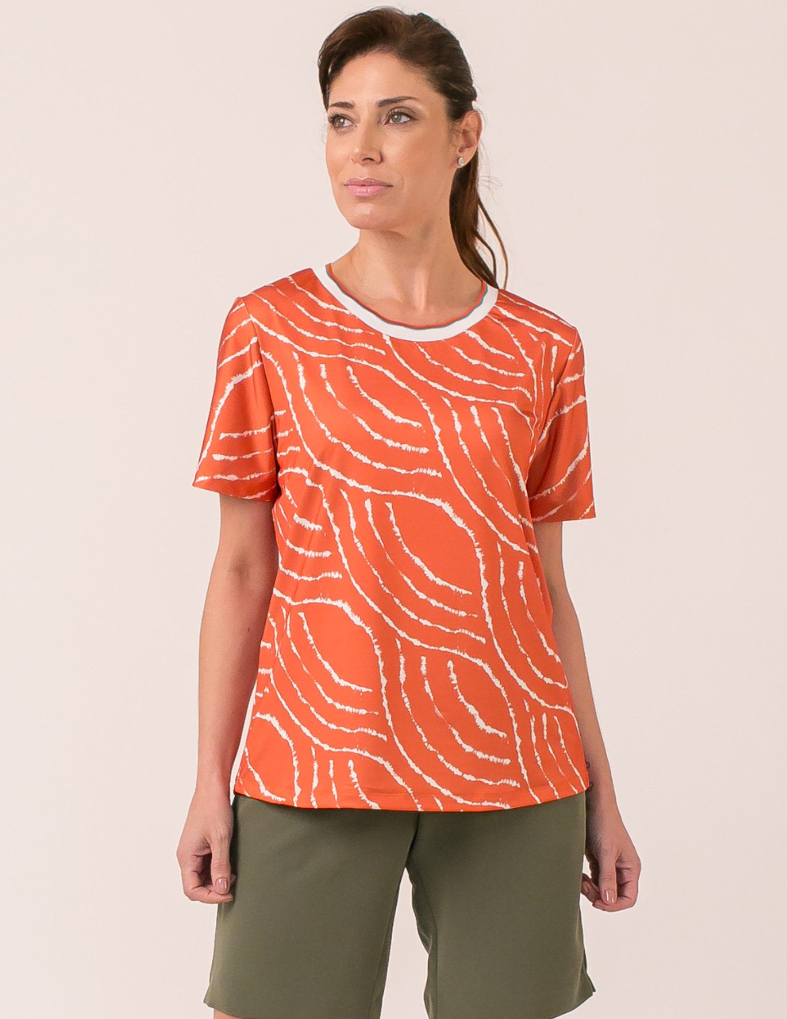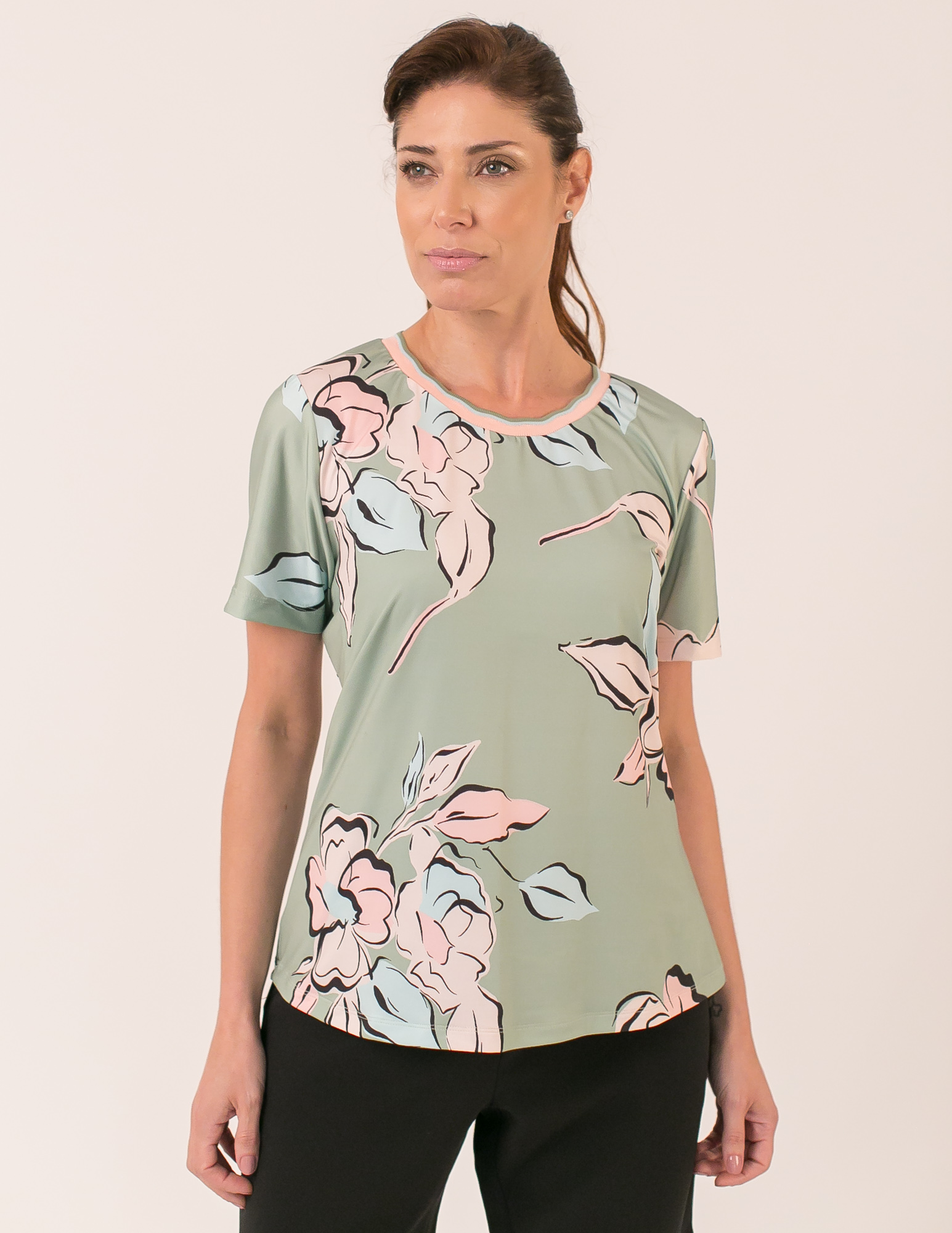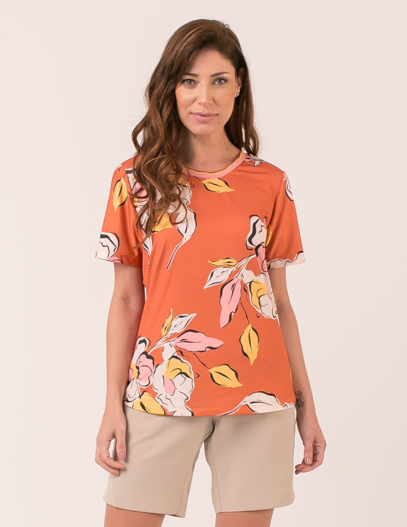T-SHIRT ESTAMPADA MALHA FRIA C/ GOLA RETILÍNEA