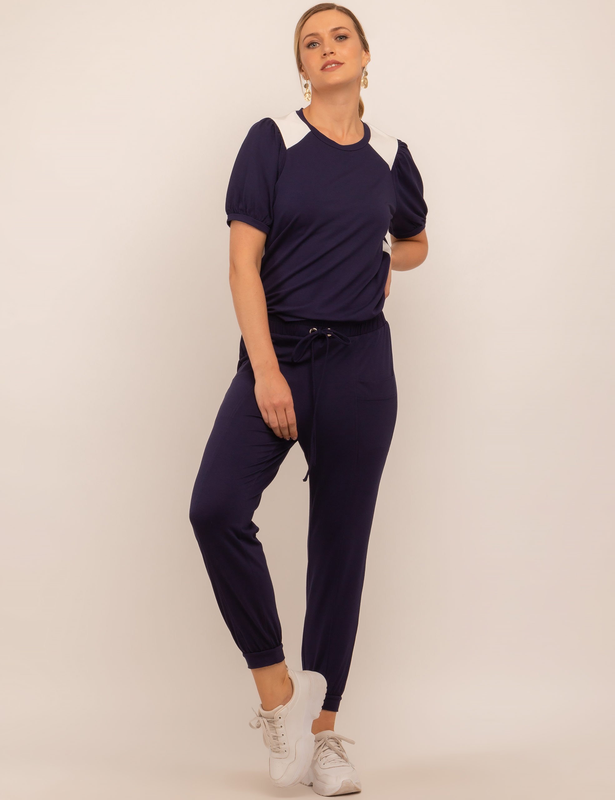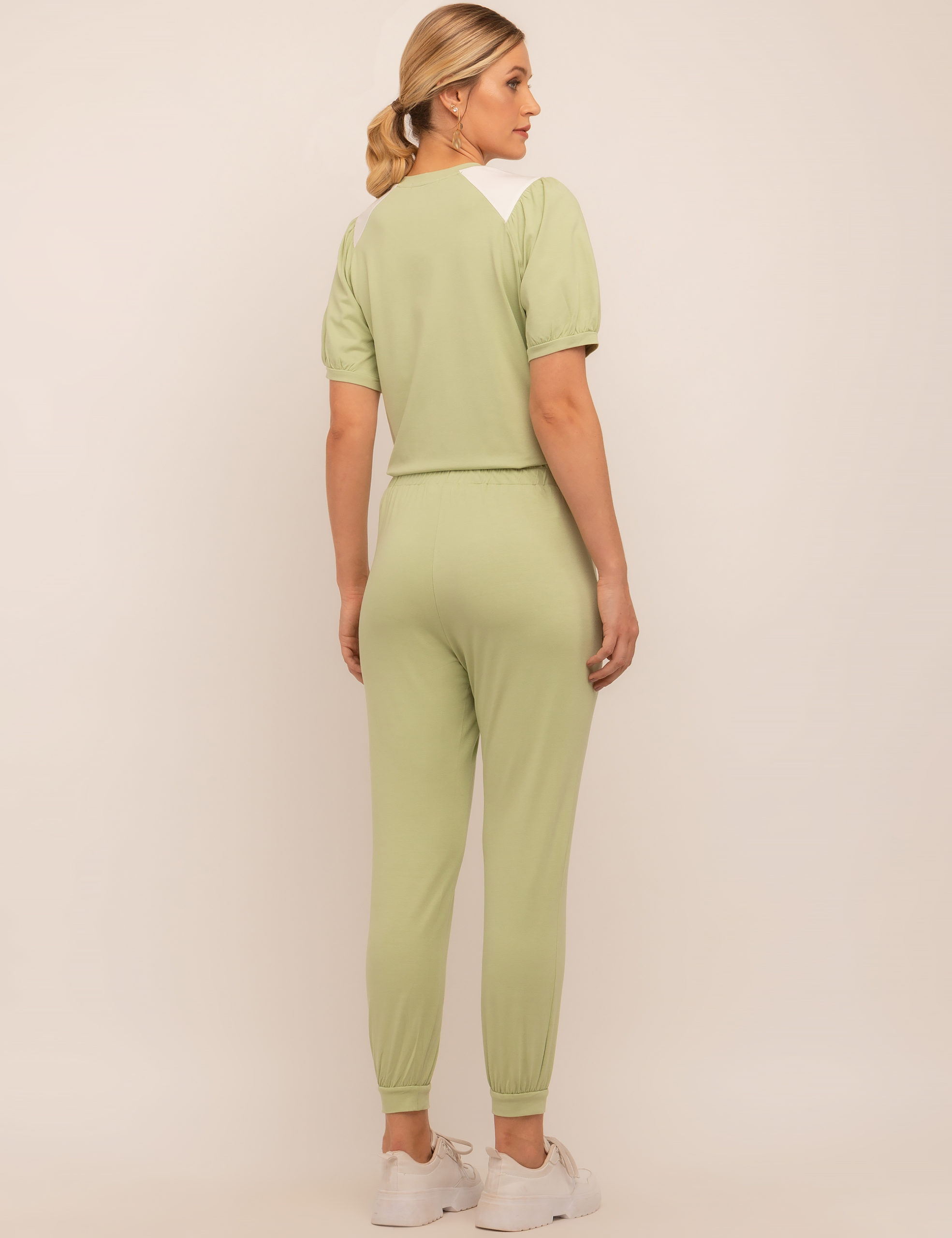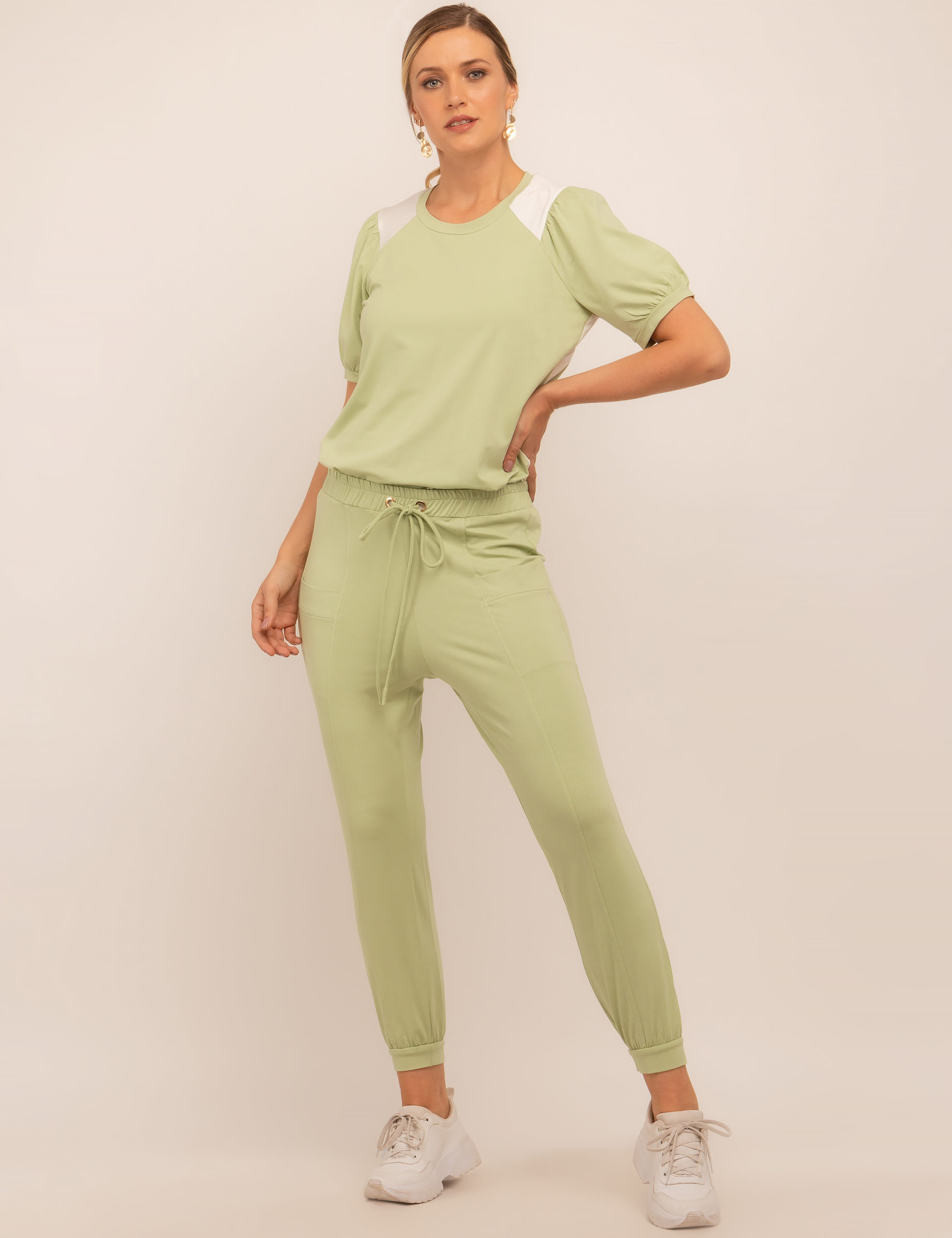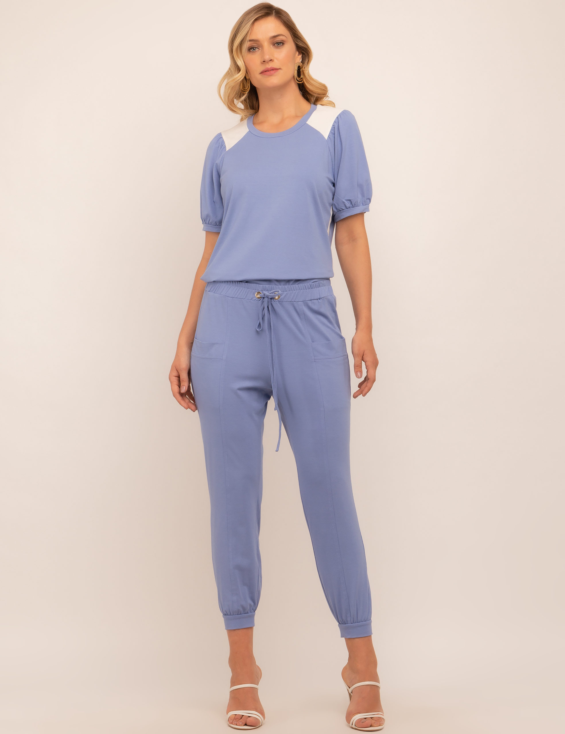 CONJUNTO MALHA BLUSA BICOLOR CALÇA ELÁSTICO E DET BOLSO