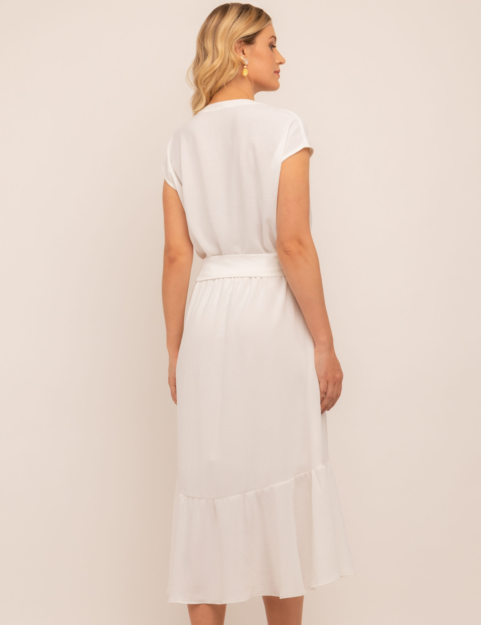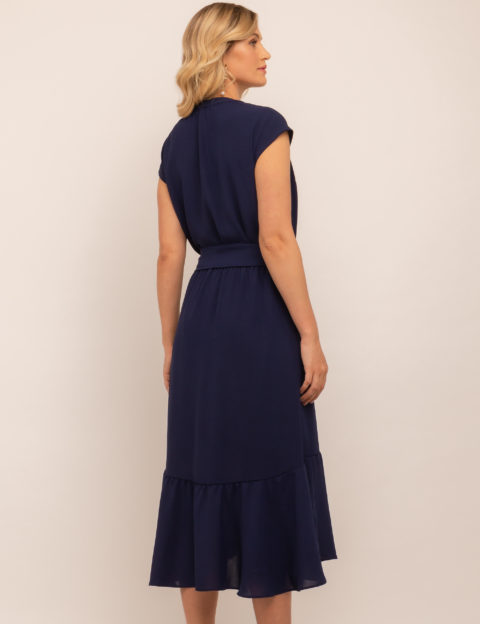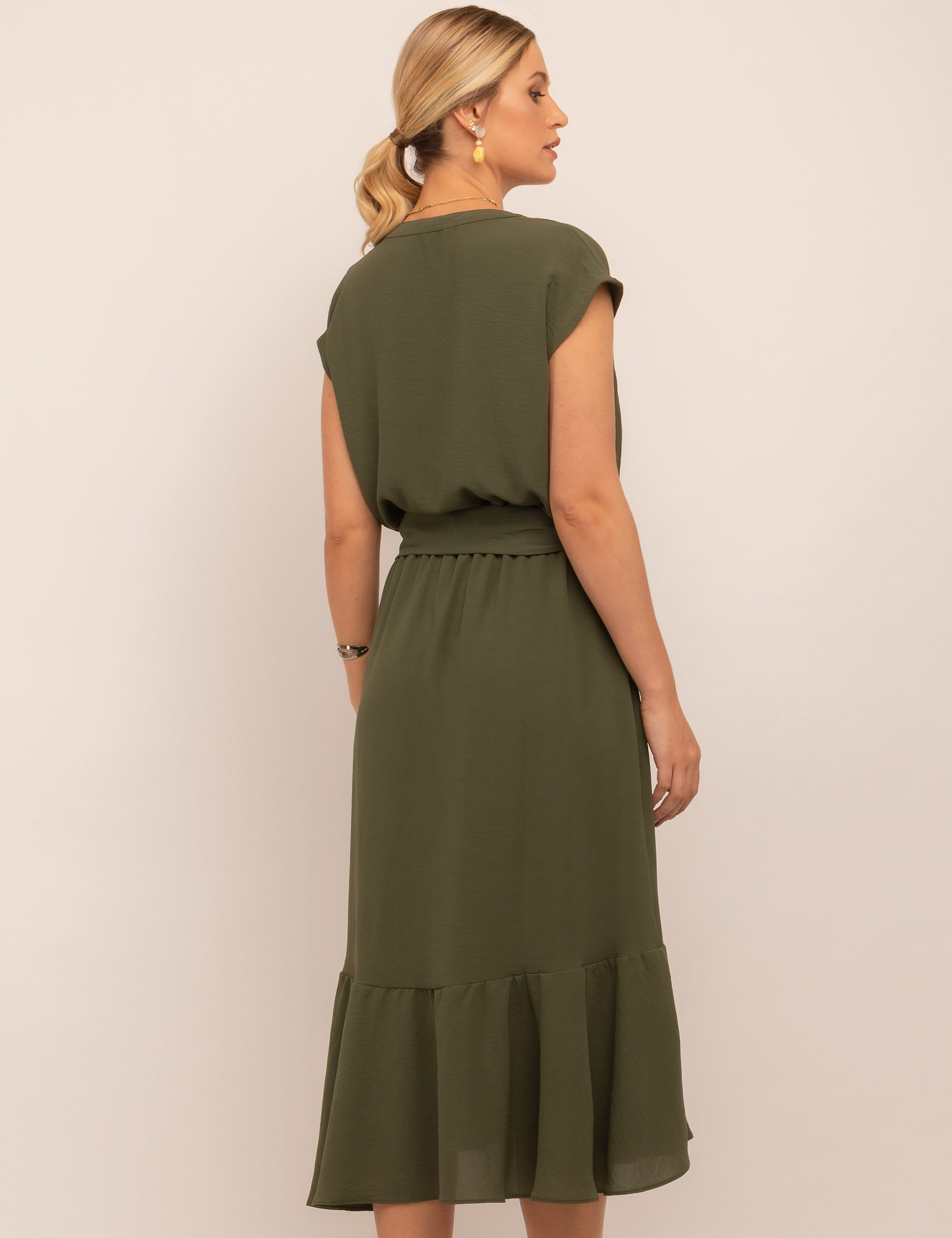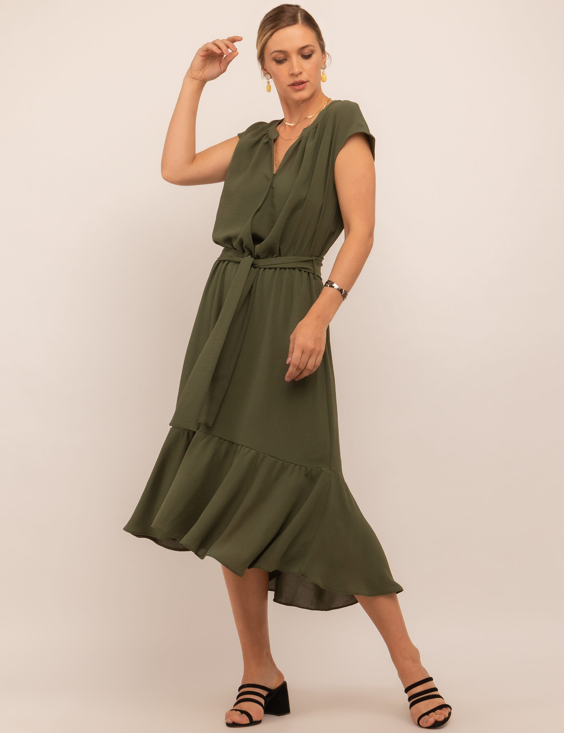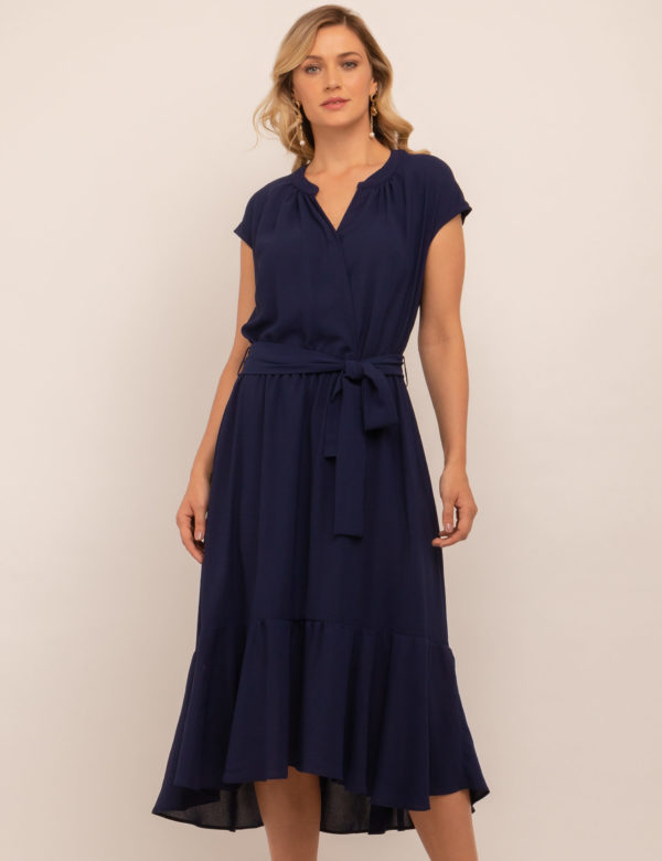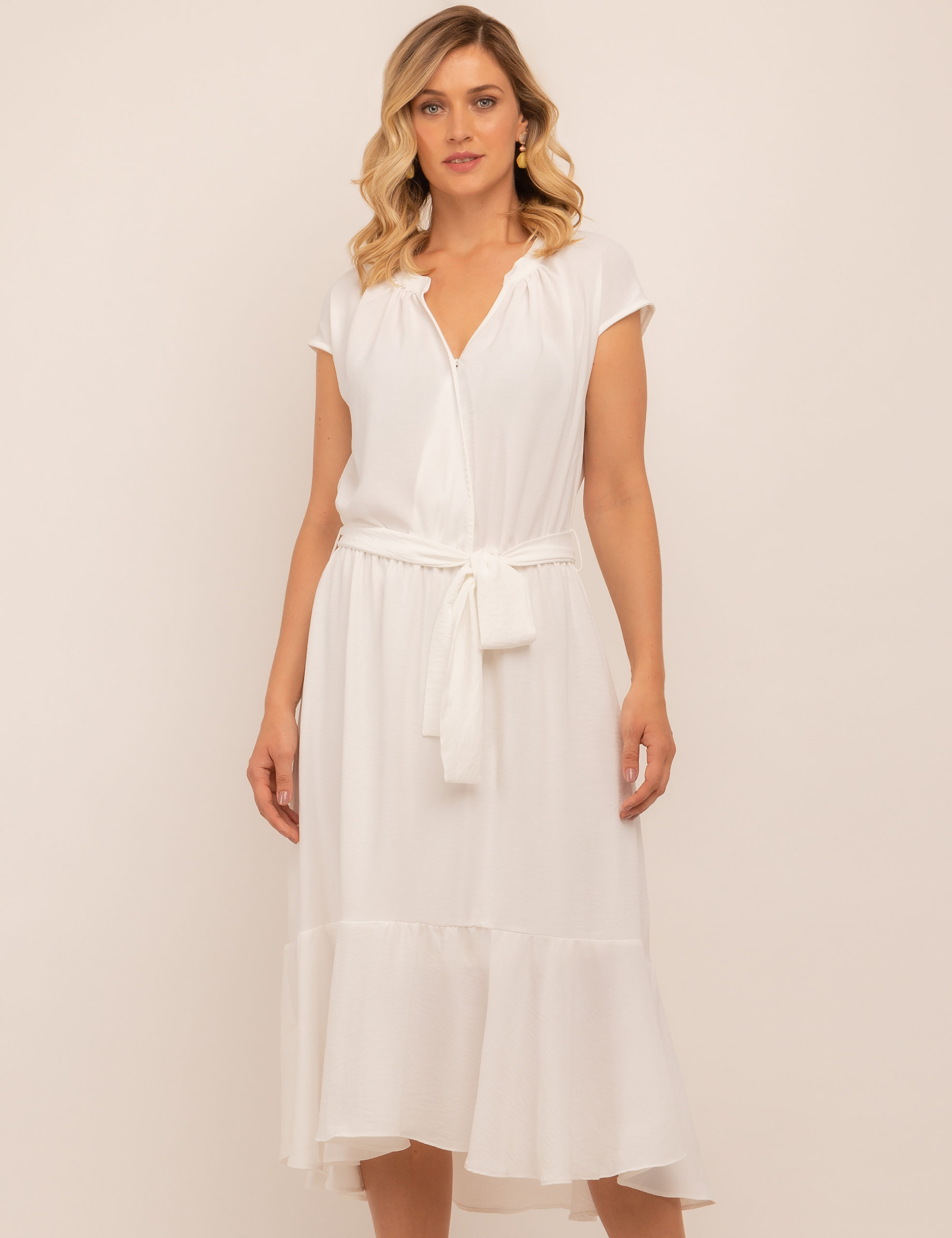 Vestido Cachecour, manga Curta, tecido poliester e faixa na Cintura